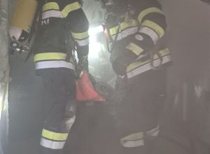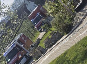 Einsatz eines ATS-Trupps zur Menschenrettung einer vermissten Person im Brandobjekt, gefolgt von der Brandbekämpfung des Objektes und dem Schützen des angrenzenden Wohngebäudes.